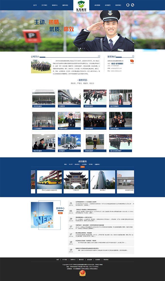 蘇州市東吳保安服務(wù)有限公司成立于2011年8月,注冊資本1000萬元,是一家經(jīng)江蘇省公安廳批準(zhǔn)特許經(jīng)營安全服務(wù)的綜合型現(xiàn)代安全專業(yè)服務(wù)企業(yè)。公司主營業(yè)務(wù)包括門衛(wèi)、巡邏、守護(hù)、安全檢查、隨身護(hù)衛(wèi)、區(qū)域秩序維護(hù)、大型活動保障、安全咨詢等。公司服務(wù)項(xiàng)目包括高校、銀行、政府機(jī)關(guān)、公共交通、中小學(xué)及各類企事業(yè)單位,遍及江蘇、河南、山東等區(qū)域,2018年,公司年?duì)I業(yè)額達(dá)7800余萬元,員工人數(shù)1500余人。現(xiàn)為江蘇省保安協(xié)會理事單位,蘇州市保安服務(wù)行業(yè)協(xié)會副會長單位。