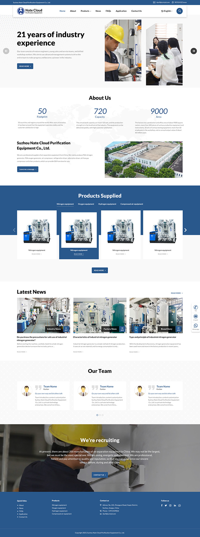 Suzhou Nate Cloud Purification Equipment Co., Ltd. is a private technology enterprises. We come from China. The company has a professional research and design team, a mature production and quality management system, and is a professional supplier of air separation equipment.