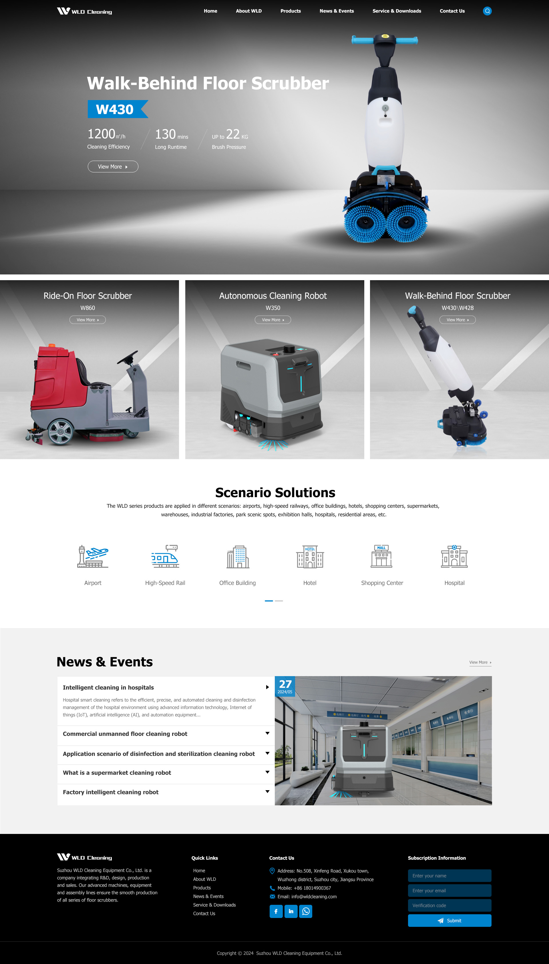 Suzhou WLD Cleaning Equipment Co., Ltd. is a company integrating R&D, design, production and sales. Our advanced machines, equipment and assembly lines ensure the smooth production of all series of floor scrubbers. After years of fierce market competition, we have accumulated rich experience to meet the different needs of our customers. Continuous innovation and providing customers with reliable products and quality services are our eternal pursuit! The company has passed the IS09001 quality system certification. We can not only provide floor scrubbers that comply with local laws and regulations, but also provide complete cleaning solutions based on customers’ actual conditions.