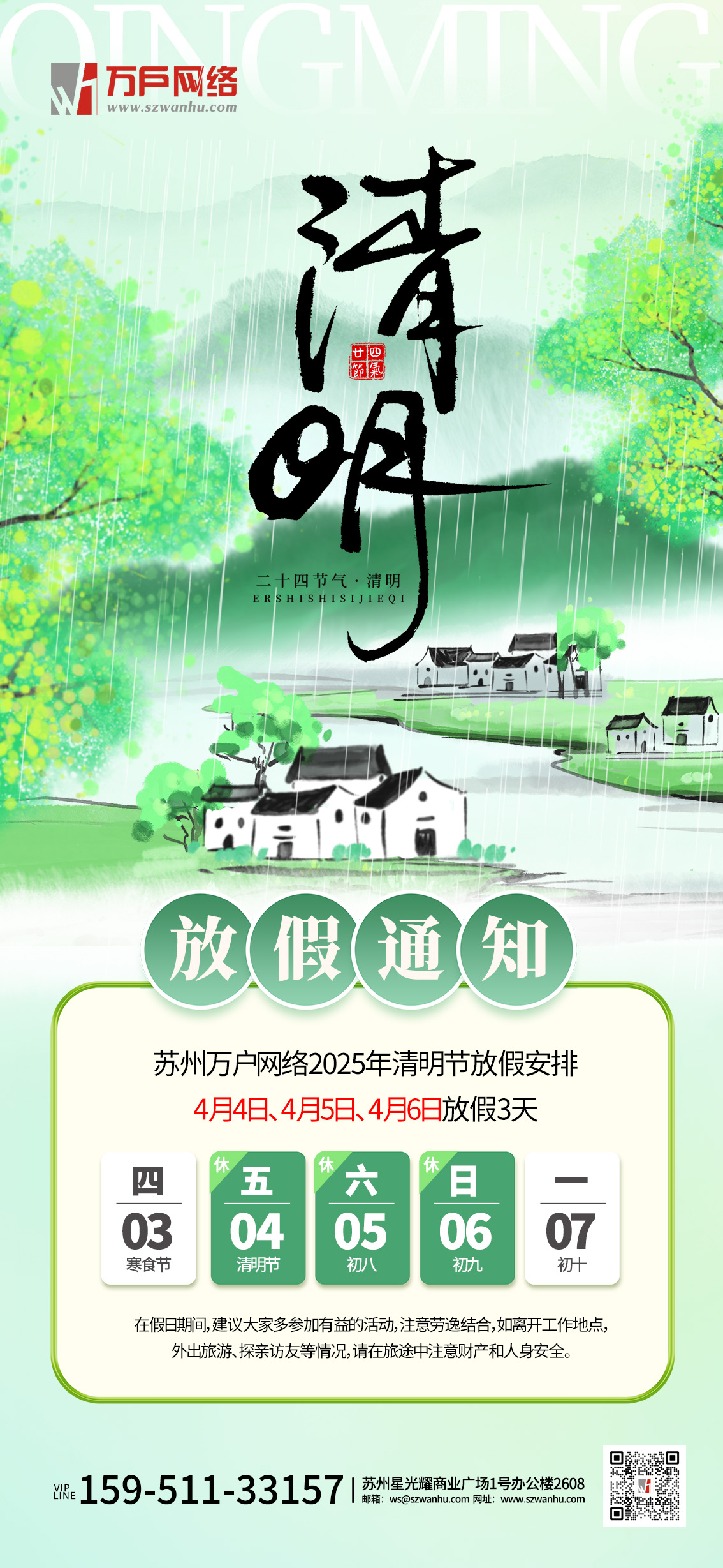 萬戶網(wǎng)絡2025年清明放假通知
